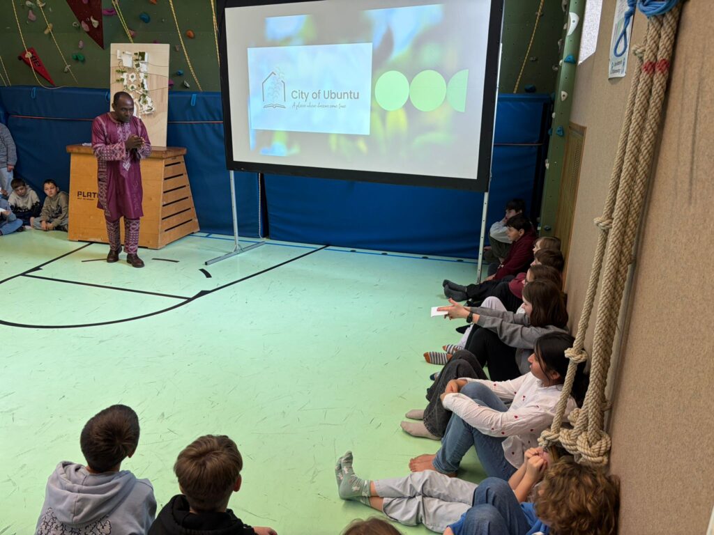 Under the guidance of their teacher, Dipl.-Ing. Herwig Ferch—architect, board member of City of Ubuntu, and one of the two architects behind the planned Ubuntu Center in Sanki, Cameroon—three school classes of students aged 10 to 12 explored the question of how they imagine a city shaped by Ubuntu values. The result: three model cities full of encounter, cooperation, and shared responsibility.